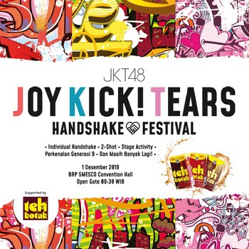 Jangan lupa buat dateng ke acara #JKT48 'Joy Kick! Tears' Handshake Festival brsama Teh Kotak,. Acaranya nie hari pukul 14:00 dan 15:40 WIB.